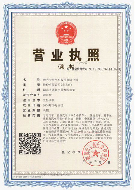 程力專用汽車(chē)股份有限公司各類專用汽車(chē)的專業(yè)廠家,大型專用汽車(chē)廠。國(guó)內(nèi)園林綠化、石油化工、市政環(huán)衛(wèi)、壓力容器專用汽車(chē)商。注冊(cè)“程力威”牌,產(chǎn)品代碼:“CLW”。東風(fēng)、解放、福田、重汽、陜汽、北奔等公司的重要合作伙伴,主要從事各類專用汽車(chē)的業(yè)務(wù),同時(shí)也銷(xiāo)售各大型廠家的整車(chē)及配件。公司擁有自行出口權(quán),其主導(dǎo)品種有灑水車(chē)系列、吸污(吸糞)車(chē)系列、垃圾車(chē)系列、掃地車(chē)系列、油罐加(運(yùn))油車(chē)系列、高空作業(yè)車(chē)系列、清障車(chē)系列、隨車(chē)吊系列、自卸車(chē)系列、教練車(chē)系列、半掛車(chē)系列、化工車(chē)系列、消防車(chē)系列、廂式(冷藏車(chē))系列、牽引車(chē)系列、粉粒物料車(chē)系列、攪拌車(chē)系列、壓力容器系列、專用車(chē)配件等十八大系列300多個(gè)品種車(chē)型。同時(shí)批發(fā)東風(fēng)、解放、楚風(fēng)各種二類底盤(pán)。